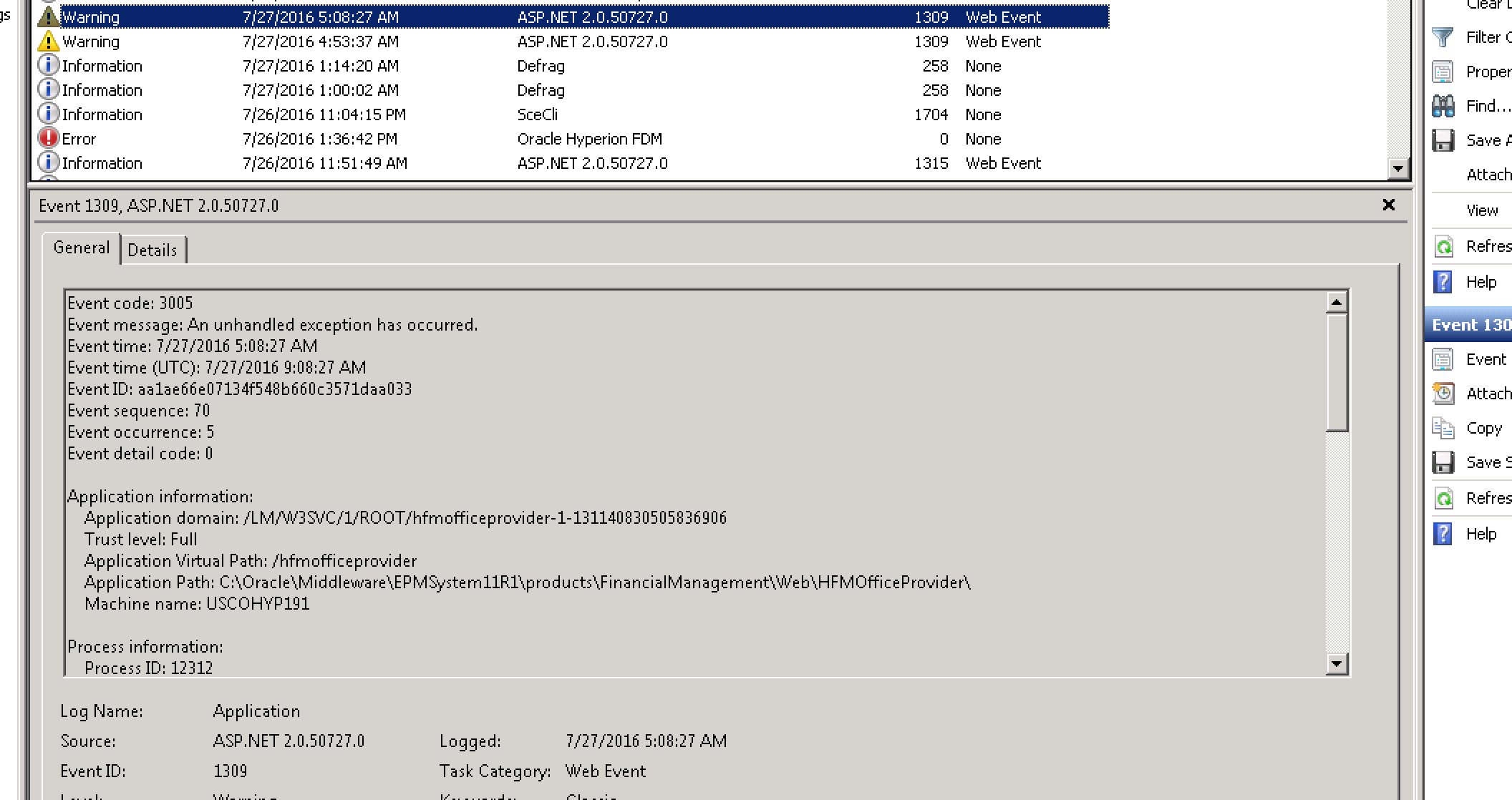 Please find attached the screen shots of the errors found in the Event Viewer.